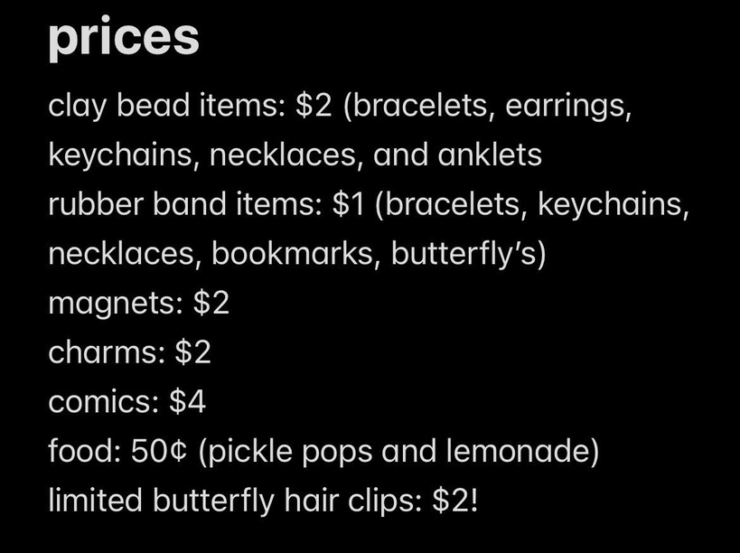 ask cami for prices or go to the next page